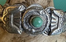Vintage Fred Harvey Era Navajo Silver Turquoise Thunderbird Snake Cuff Bracelet