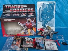 Please follow my FB page Arfive's Archives.. list there β¬οΈ first. Item seems to be in pretty good used condition. Complete with all pieces. Did not attempt to transform. Has all accessories, instructions, unused sticker sheet, bubble with backing torn and box. Box shows wear consistent with age. Edge wear, small tearing, crease along flap, slightly bulging on bottom rear. See pics for condition and ask if any additional questions or concerns. As is..no returns or partial refunds. Please check out my other items..can combine shipping domestically