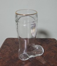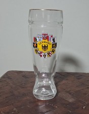 The vintage Germany beer glass boot is a 0.5 liter collectible piece perfect for beer enthusiasts and collectors. Made in Germany, this glass boot showcases the craftsmanship of German breweriana, with a classic design that represents the country's beer culture. The item is authentic and unmodified, making it a unique addition to any collection of drinkware or steins. Perfect for displaying or using for your favorite beverage, this beer glass boot is a must-have for any German beer lover.