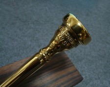This is a rare Old Jardineri 7VS two-piece model trumpet mouthpiece. It features a 99% gold-plated finish and is in excellent condition. Don't miss this exceptional opportunity to own a rare piece.