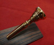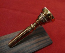 This is a rare Old Jardiner A. CIOFFI 2-piece model mouthpiece, featuring a unique personal engraving. Crafted with 99% gold plating, it is in excellent condition. It features a thin, rounded rim design that produces a dark and rich tone, making it a distinctive choice for musicians seeking a unique sound.