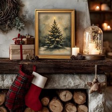 Vintage Gold Framed Christmas Tree Wall Art Rustic Pine Tree Winter Painting ...