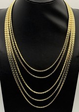 Add a sophisticated touch to your jewelry collection with this beautiful gold-tone multi-strand necklace. This piece features five layers of finely detailed chains that create an elegant, draped look. The high-polish finish gives it a brilliant shine, making it a perfect statement piece for layering or wearing on its own. It is a versatile accessory that transitions easily from day to evening wear. The longest strand is 24 inches.