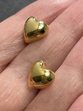 Vintage Gold Tone Puffy Heart Stud Earrings