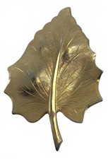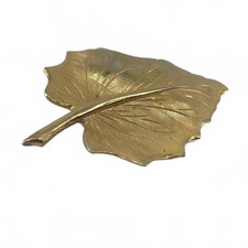 Vintage Gold Tone Textured Leaf Brooch Mid Century Modern Botanical Pin Large