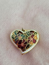 Vintage Gold Toned Floral Heart Shaped Enamel Pendant
