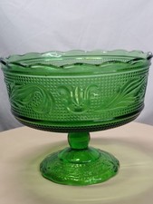 Vintage Green Candy Dish Glass EO Brody Compote Retro Boho Aesthetic Planter