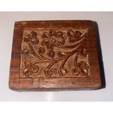 Vintage Hand Carved Wooden Box Made in India. Approx. 1.5" tall, 3" long, 2.5" wide Pre-owned