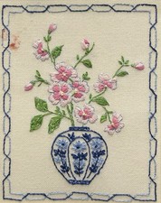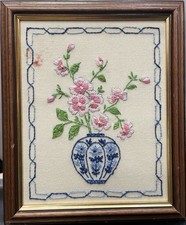 Vintage Hand Embroidered Floral Still Life Art Framed