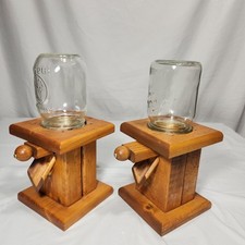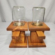Vintage Hand Made M&M/ Nut/ Candy Dispenser Wood & Glass Mason Jar USA Set Of 2
