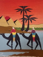 This is a Fabulous Vintage 100% Pure Wool carpet Kilim 45” X 31.5 “ inches. Handmade of Bedouin Siwa Oasis Pure Wool (it is a desert far from Cairo present in Egypt ) and the Bedouin (people who live in the desert) made it from wool by hands so it represents the life in Oasis riding the Camels. Wonderfull Natural Scene with Amazing Bright colors.