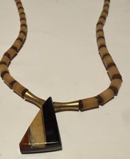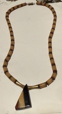 Vintage Heishi Wood Brass Native Ethnic Triangular Necklace  additional preview