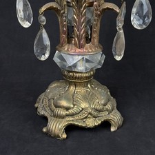 A vintage Hollywood Regency Style Lamp - Not Working needs a new wiring - brass base - brass decorative leaves with crystals (2 of them missing) - Clear Glass shade - total height aprox. 15 inches See pictures for details