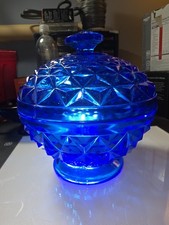 Vintage Indiana Cobalt Glass Candy Dish With Lid