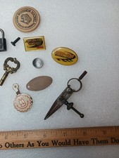 This vintage junk drawer lot features an assortment of MLB pin advertisements and memorabilia pins. The collection offers a variety of items from the world of sports, making it a unique and nostalgic addition to any collector's inventory. With a mix of vintage and more recent pieces, this lot provides a diverse selection for those interested in sports memorabilia and unique pin collections.