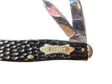 Vintage KENT 2-Blade Pocket Knife Black Jigged Handle Clip Pen Point Collector