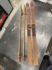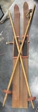 Vintage Kids Old Wooden Snow Skis w/ Poles 100 cm Wall Hangers