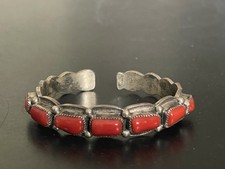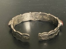 Vintage KM Navajo Sterling Silver Coral Cuff Bracelet - Signed