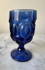 This vintage L.E. Smith Moon and Stars goblet is a rare find from the 1960s, featuring a striking cobalt blue color and footed design. This decorative piece showcases the classic Moon and Star pattern, adding a touch of elegance to any collection.