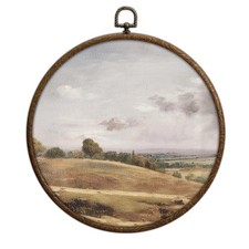 Vintage Landscape Round Wall Art, Muted Landscape Waterproof Bathroom Round F...