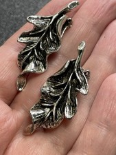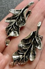 Vintage Large 1.8” Silver Tone Leaf Clip Earrings