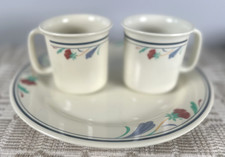 Vintage LENOX Chinastone Poppies On Blue - 3 piece Melamine Plate and 2 Cups