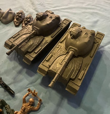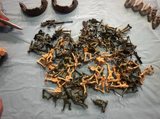 This vintage lot of 87 pieces of toy army men, tanks, planes, and guns is a collection of plastic soldiers from the 1970s. The set includes a variety of military-themed toys such as toy soldiers, tanks, planes, and guns, providing hours of imaginative play for kids and collectors alike. The durable plastic material ensures that these toys will withstand hours of fun and creative storytelling.