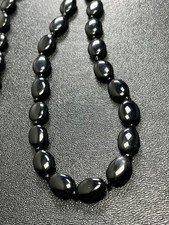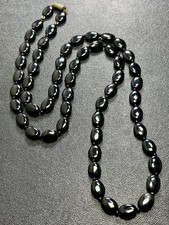 Vintage MCM 32” Black Glass Beaded Barrel Clasp Necklace