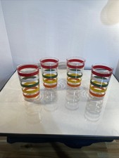 Vintage MCM Set Of 4 Anchor Hocking USA Fiesta Band Drinking Glass 15oz Tumblers