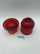 Vintage MCM Viking Glass Fairy Lamp Ruby Red Diamond Point Glimmer