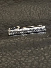 This vintage metal tie bar clip features an elegant engine turned braided pattern in silver color. Designed for men's jewelry, this tie clip adds a touch of sophistication to any outfit by securely holding a tie in place. The unique design of the tie bar clip makes it a stylish accessory for formal occasions or everyday wear, perfect for those looking to elevate their style with a classic piece of men's jewelry. Please look at all pictures for measurements and condition.