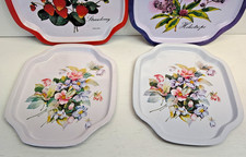 VINTAGE! METAL TIN ENAMEL TRAY FLOWERS HELIOTROPE STRAWBERRY HONG KONG SET OF 4