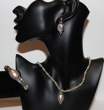 Vintage Mexico 925 Sterling Silver Mother of Pearl Necklace Bracelet Earrings