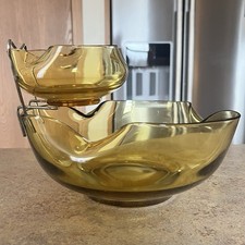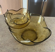 Vintage Mid Century Anchor Hocking Amber Yellow Chip And Dip Serving Bowl Set