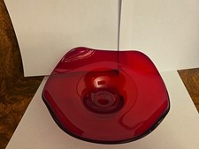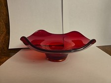 The Vintage Mid Century Red Viking Art Glass Bowl is a collectible piece that embodies the vibrant colors and unique design aesthetics of the 1960s. This bowl is a stunning example of the craftsmanship and artistic flair of the mid-century era, featuring a bold red hue and the signature style of Viking Art Glass. Perfect for collectors of vintage and retro pieces, this bowl adds a touch of nostalgia and charm to any space with its timeless appeal and classic design. Excellent condition No chips or cracks Approximately 7 inches across