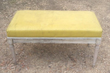 Vintage Mid Century Yellow Vinyl & Wood Bench Foot Stool