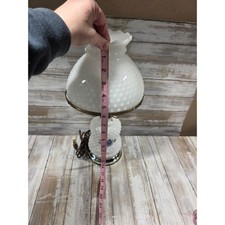 Vintage Milk Glass Hobnail Hurricane Lamp Blue Rose Floral White Ruffled Shade