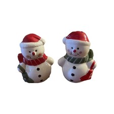 Vintage Mr And Mrs Snowman Salt And Pepper Shaker Set Hand Painted Earthenware