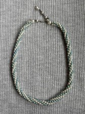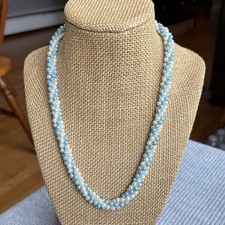 Vintage Multi Strand Blue White Faux Pearl Beaded Necklace
