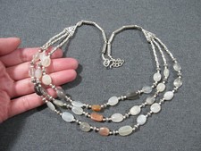 Vintage multistone silver plated metal beads 3 strands bib collar necklace