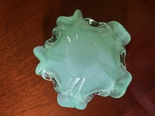 Vintage Murano Hand Blown Art Glass Ruffled Bowl Aqua Opaline Italian MCM
