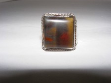 Vintage Native American Petrified Wood & Stamped Silver Ring Size 11