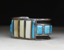 Vintage Native American Zuni Sterling Silver Turquoise Cuff Bracelet Size 6.5