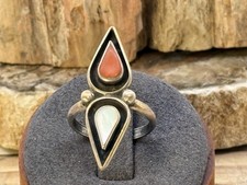 Vintage Navajo Native Sterling Silver Mother of Pearl Coral Ring sz 5.5--668.26