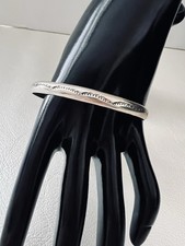 This piece is marked and tested sterling but is heavily attributed to the Tahe family style, featuring their classic hand-stamped geometric patterns Metal: Solid .925 Sterling Silver (Marked) Weight: 16.4 Grams Design: Carinated (ridged) style with intricate hand-etched geometric "eternity" patterns. Origin: Native American; Navajo (Diné) Style: Tahe Family Style / Slim Stacker Bangle