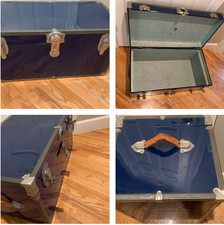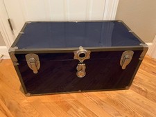 Vintage Navy Blue Storage Steamer Metal Trunk