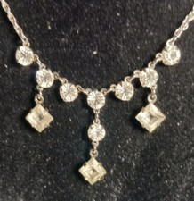 Vintage necklace, art deco, silver tone Prong Set Crystal