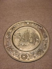 Vintage Peerage Brass Embossed Hanging Wall Plates - Made England. Used conditions Buying As is. Measurements are pictured. Please use the photos as they are part of the description. Any questions please ask them before placing a bid. Thanks for looking!!