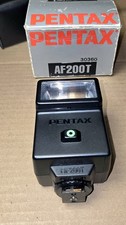 The Vintage Pentax AF200T Automatic Flash Unit is a reliable and high-quality accessory for Pentax SLR cameras. This shoe mount units capabilities making it versatile for a range of photography needs. With the original box, case, and manual included, you can trust that this Pentax AF 200T model is a valuable addition to your flash accessories collection.