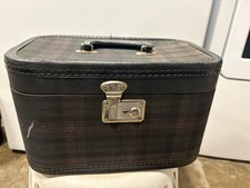 Vintage Plaid Train Case Small Hard Shell Suitcase Makeup Case With Mirror Please look at pics for condition or ask Case has several worn areas